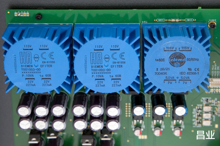 ▲ 电源部分分工明确:三只定制版本的低噪声线性变压器,一只爱尔兰Talcma变压器为数字电路供电、两只西班牙HR DIEMEN EFITER变压器为音频级电路供电。